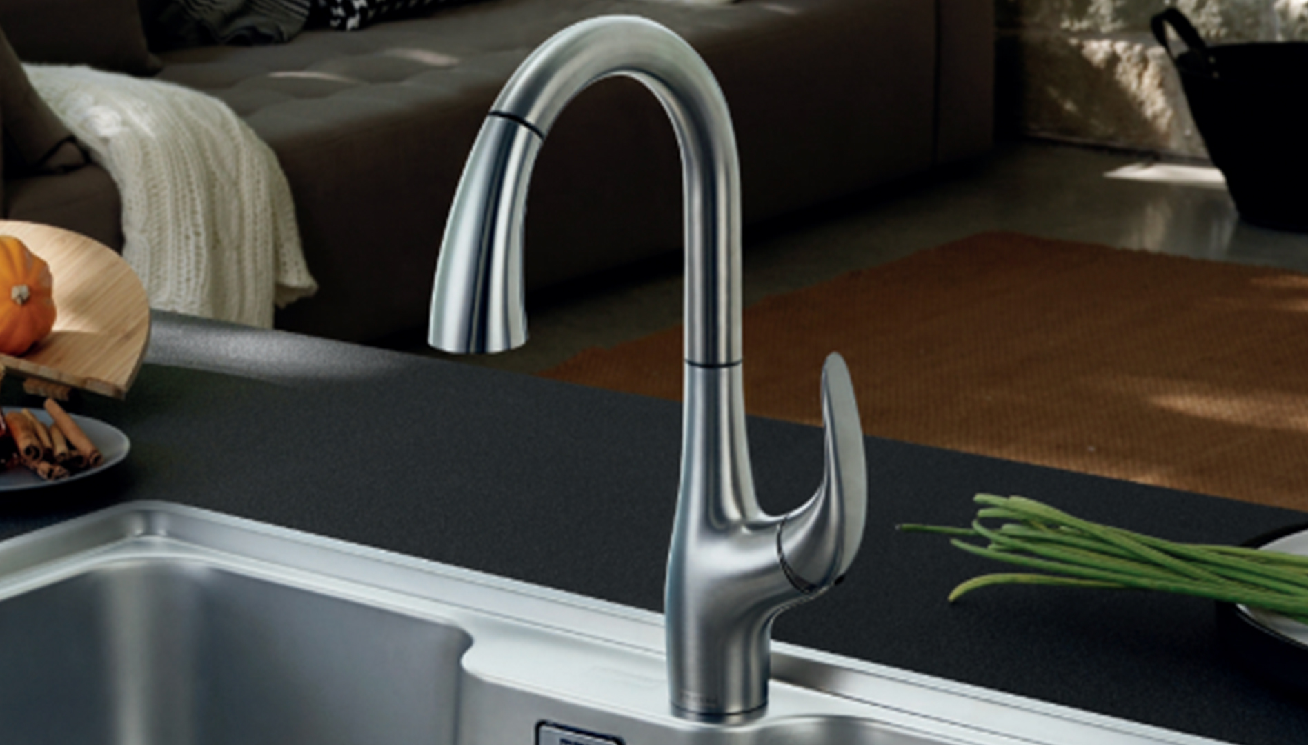 抽拉式出水嘴带切换花洒设计,出水范围大;