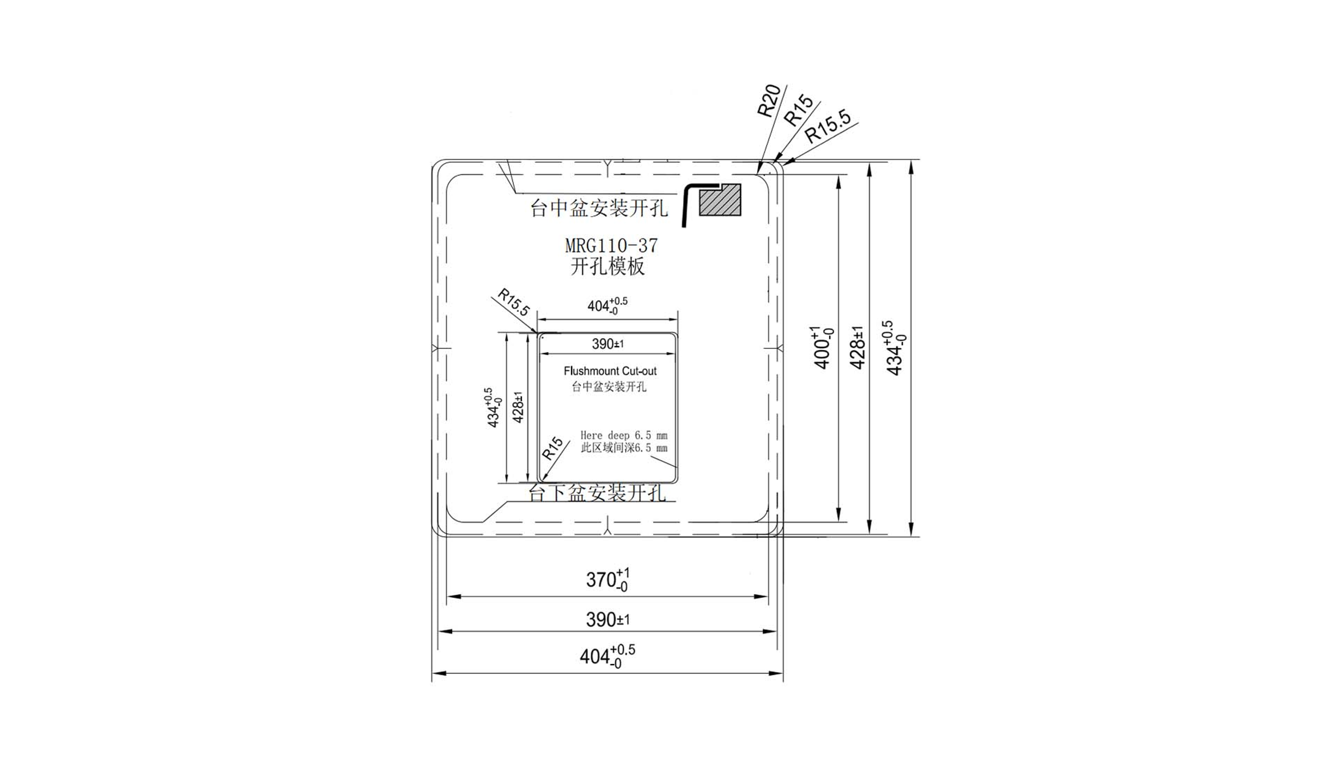 开孔尺寸 | 370×400mm,R20MM(LxW) |