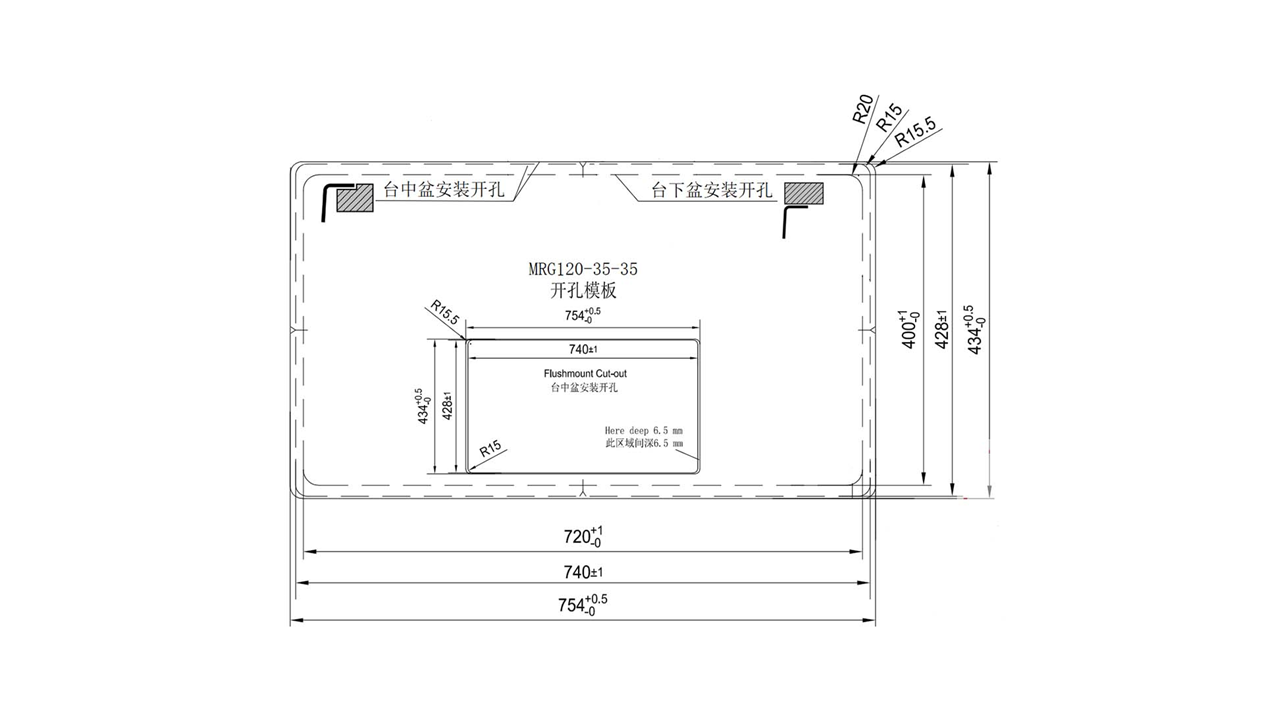 开孔尺寸 | 720× 400mm, R20mm(L×W) |