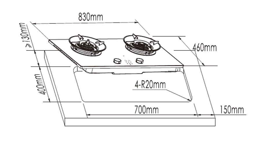 开孔尺寸(长 x 宽) | 700 x 400(mm), 4-R20 |