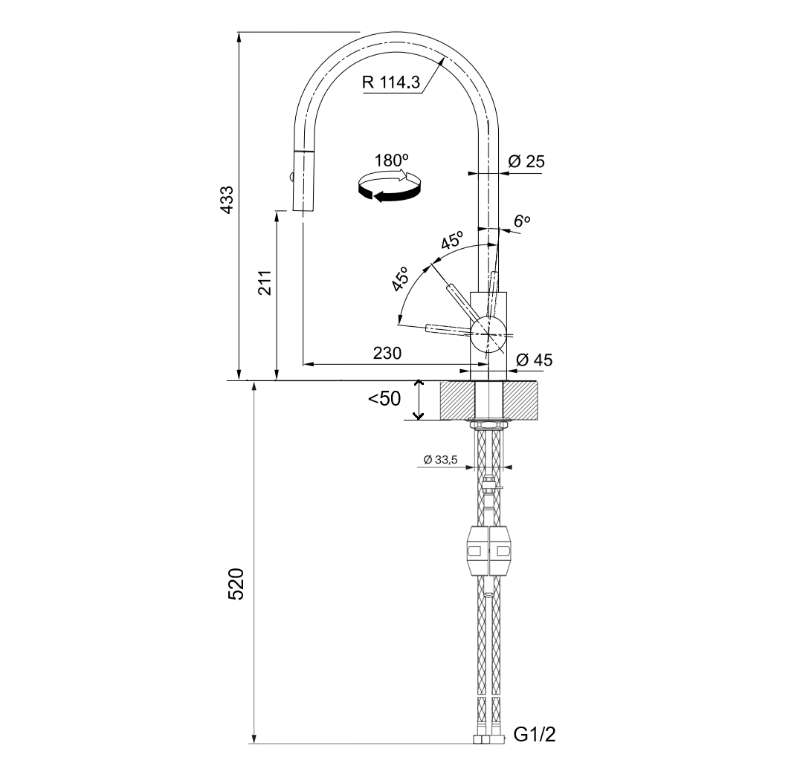 龙头高度(龙头底座到龙头顶部高度) | 433mm |