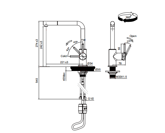 龙头底座尺寸 | ∅54mm |