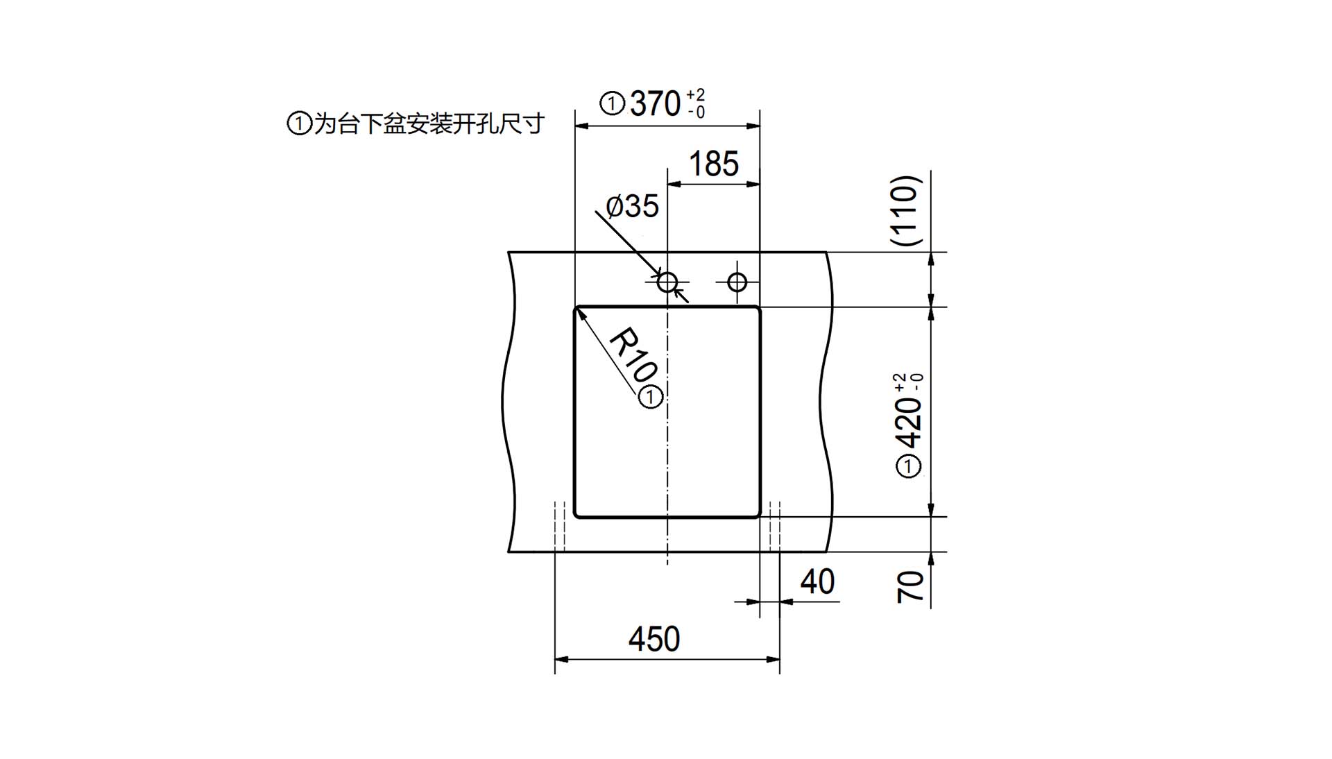 开孔尺寸 | 370 x 420 mm, R10 mm(L x W) |