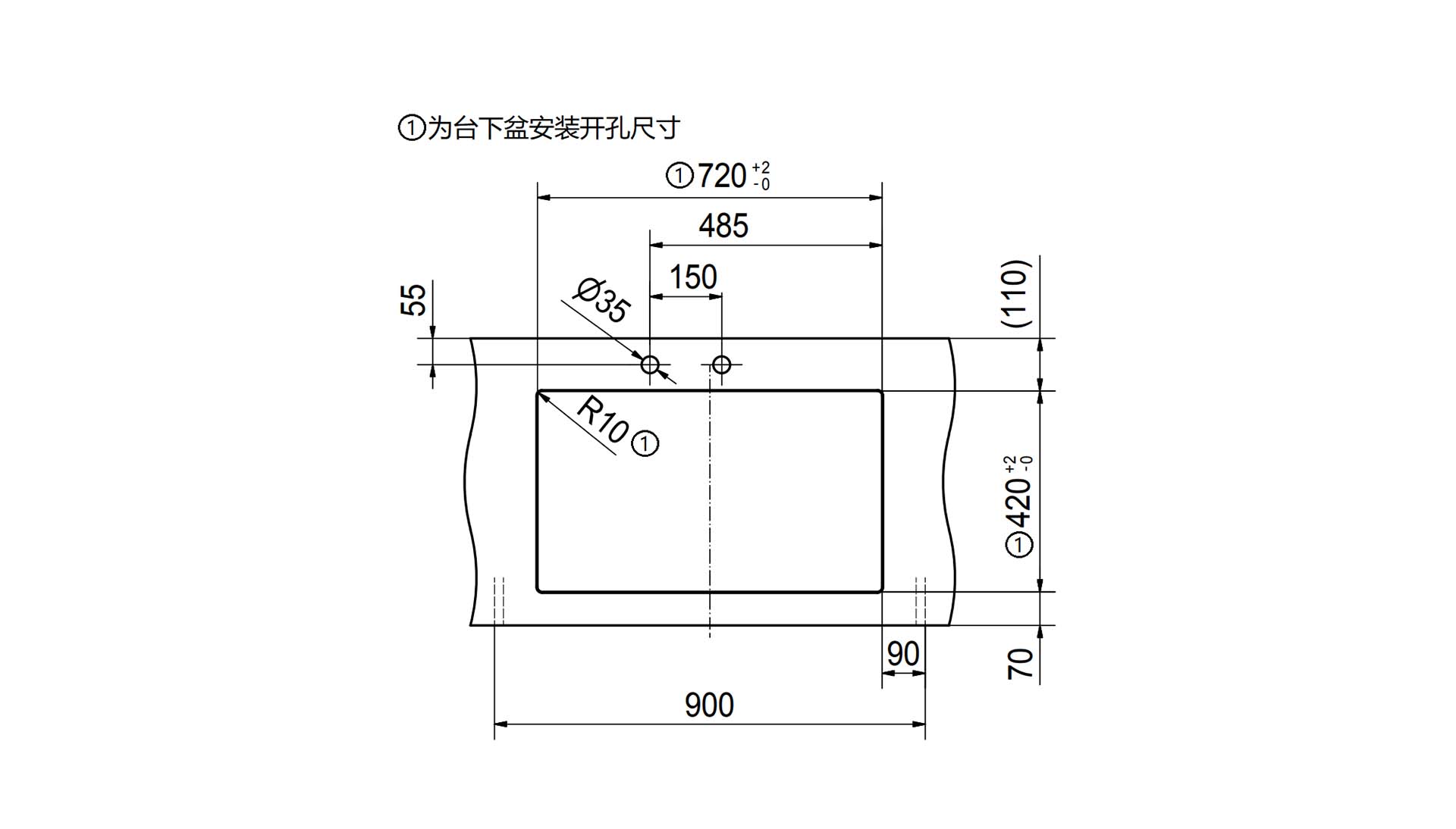 开孔尺寸 | 720 x 420 mm, R10 mm(L x W) |