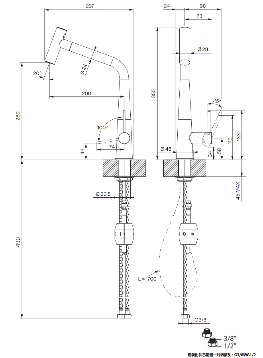 龙头高度(龙头底座到龙头顶部高度) | 355mm |