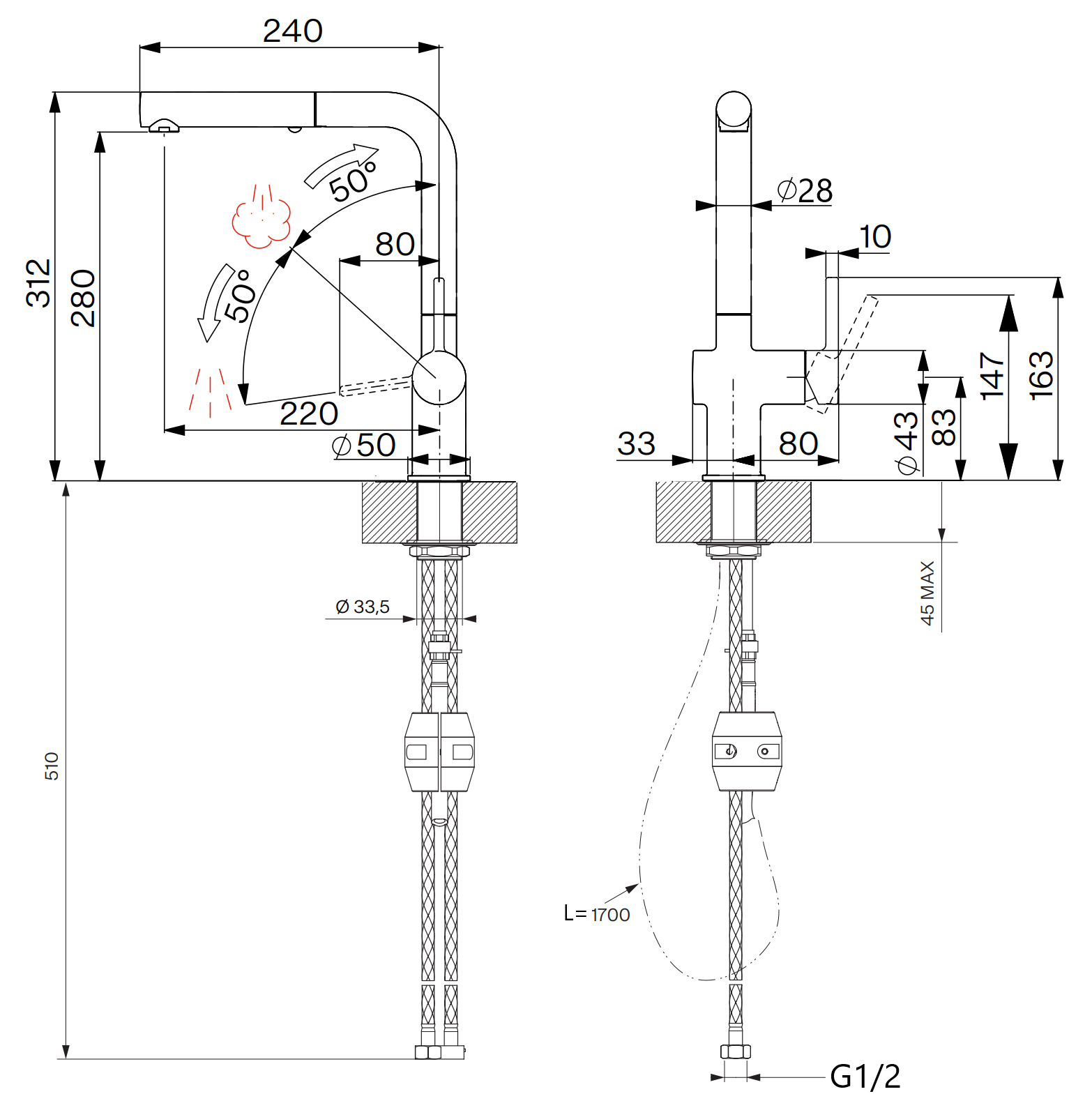 出水管高度(龙头底座到出水口高度) | 280mm |