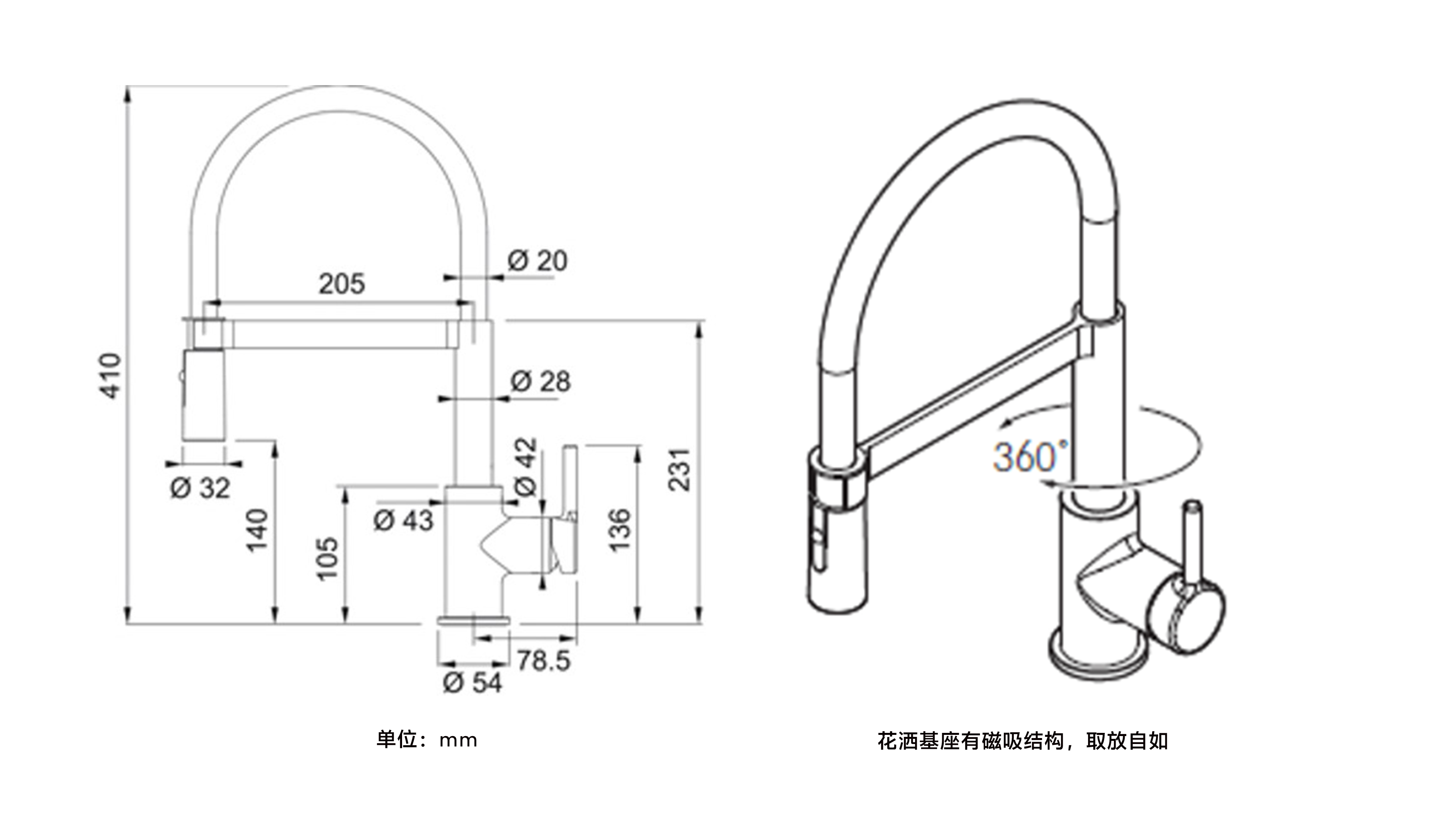 龙头高度(龙头底座到龙头顶部高度) | 410mm |