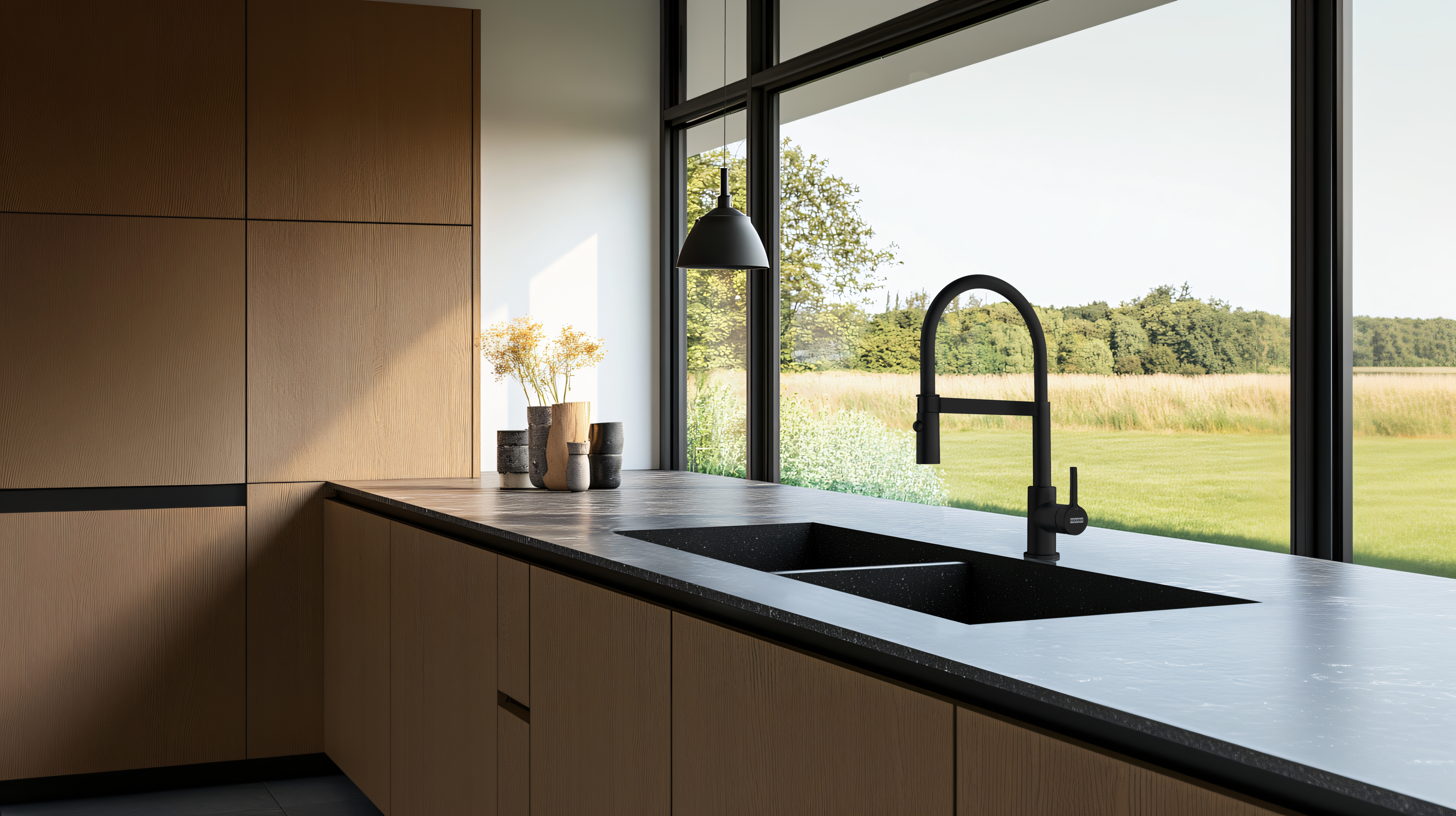 意大利原创设计,经典时尚的哑光黑表面,百搭不同风格厨房;