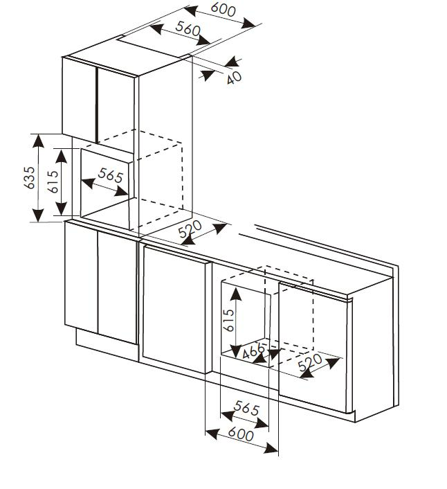 | 开孔尺寸 (W x H x D) | 565×615×520 mm |