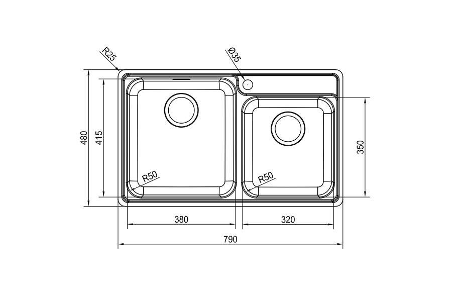 开孔尺寸 | 765×455, R25mm(L×W) |