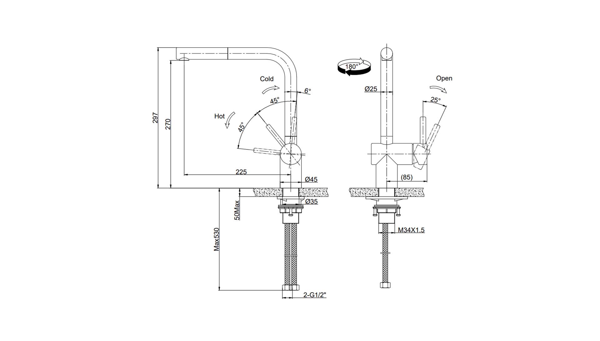 龙头底座尺寸 | Ø 45mm |